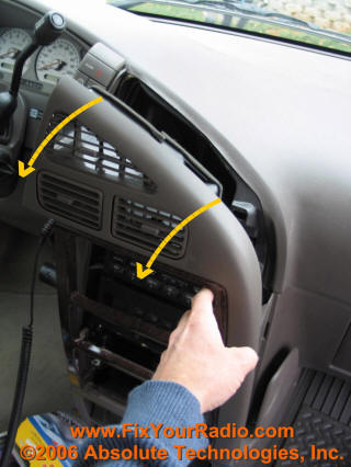 in Figure 9 and then you should be able to slide your radio out of the dash (but